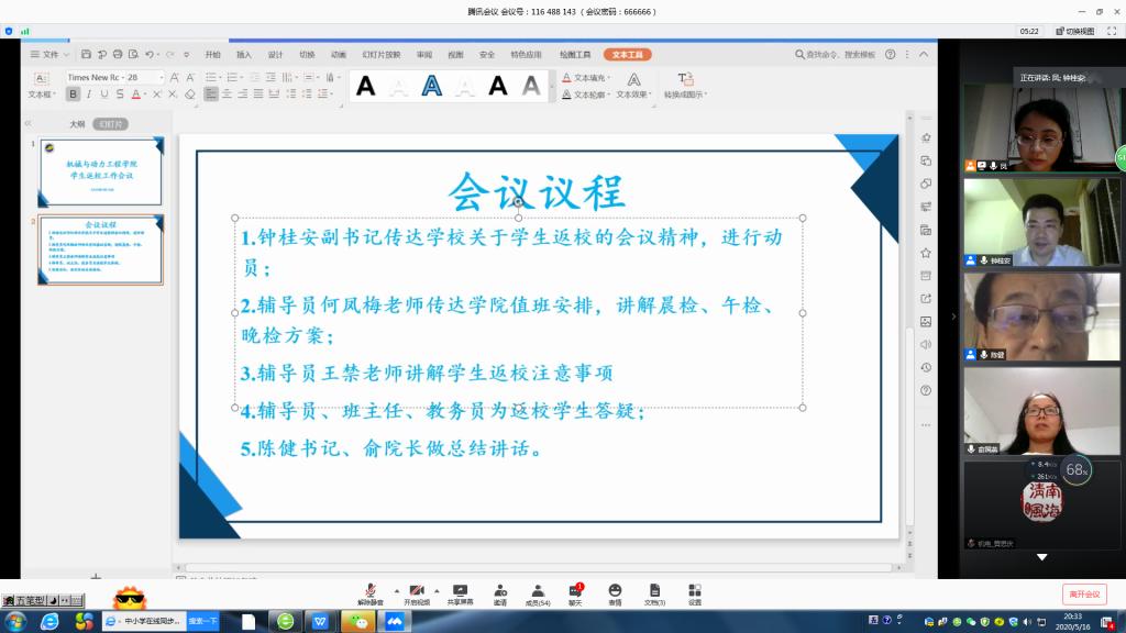 会上钟桂安副书记传达了5月15日公司关于员工返校工作会议精神,他提出辅导员、教务员和班主任们要提高站位,查漏补缺、落实落细疫情防控和员工返校各项工作,确保员工返校安全、平稳、有序。对同学们提出了几点希望和要求,希望同学们提高认识,注意返校安全,配合公司体温检查制度,积极备考,加强与老师沟通交流。毕业班辅导员何凤梅和王禁为员工做了系统的返校培训,讲解了员工返校的具体管理规定,提醒员工返校注意事项,如何乘车、报到、体温检查、住宿安排等。教务员郭严妍为同学们讲解了补、缓、重考的考试安排和考试注意事项。全体领导老师会上细致耐心地为返校员工答疑解惑,在线解决了员工衣食住行以及考试等问题,鼓励员工积极备考,放宽心态,有问题及时反馈,公司及时解决。