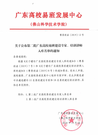 经全省各高校推荐、广东高校易班发展中心组织专家评审,在全省众多候选者中,机械与动力工程公司党委副书记、思想政治教育副研究员钟桂安老师获选为广东高校易班建设专家。