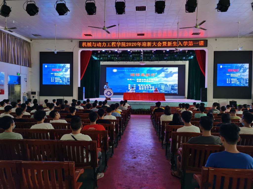 9月14号下午,公司在主校区礼堂召开了2020级新生迎新大会暨“新生入学教育第一课”。公司党委书记李国芳、经理俞国燕、党委副书记钟桂安、副经理刘海涛出席会议。各系系主任、全体新生辅导员、新生班主任和全体2020级新生参加大家。因疫情防控需要,新生分两批参加大会。