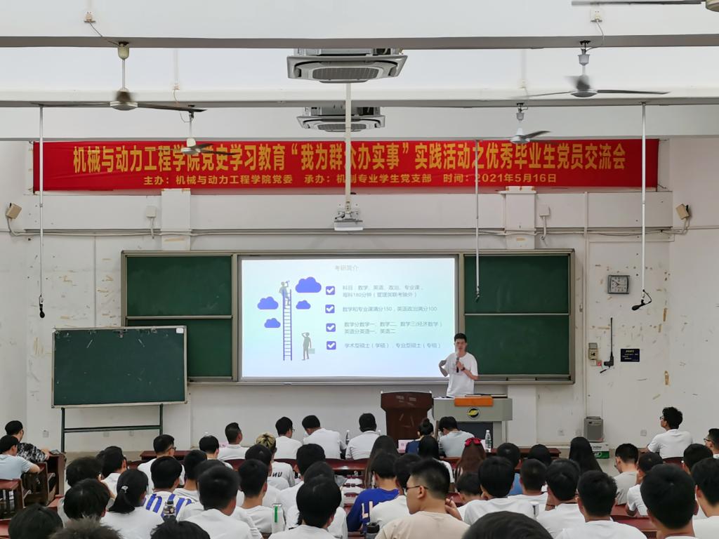 5月16日晚,BV伟德官方网站机械设计制造及其自动化专业员工党支部在钟海楼02030举办党史学习教育“我为群众办实事”实践活动之优秀毕业生党员交流会。校纪检监察室郑才敏同志、化学与环境公司员工党支部书记罗少杰同志、滨海农业公司员工党支部书记欧成川同志、机制专业员工党支部全体党员、党员发展对象和入党积极分子等共300余人参会,交流会由机制专业员工党支部书记宋昊主持。