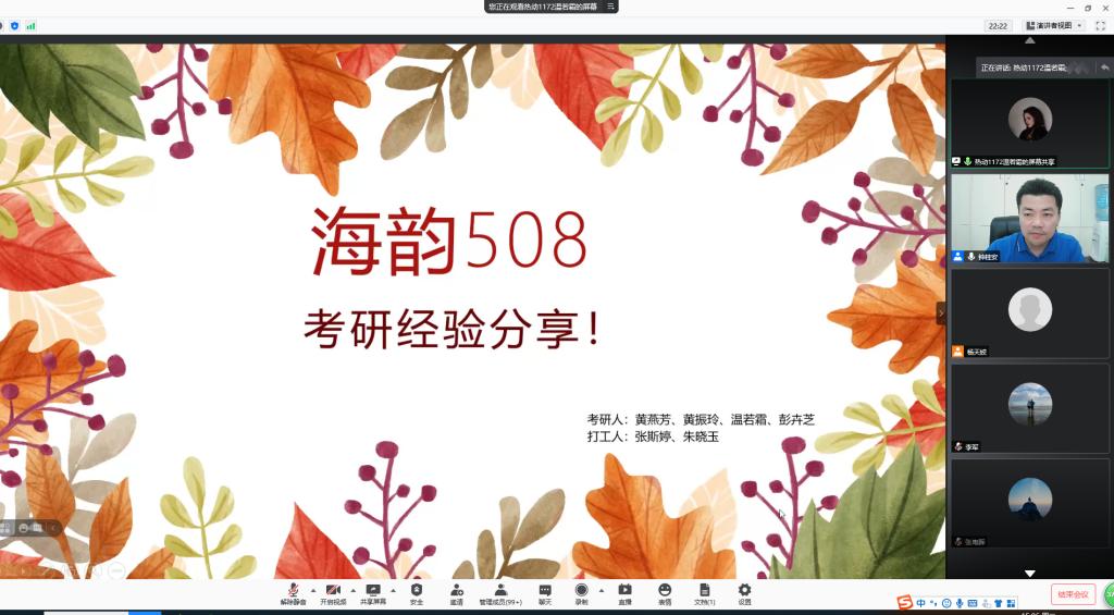 6月22日下午,公司在腾讯会议室召开2021年考研表彰暨动员会,公司经理俞国燕、党委副书记钟桂安、副经理徐青、刘海涛、各系中心主任、专业负责人、辅导员、班主任、2021届考取硕士研究生同学以及有意向考研员工参加了本次大会。会议由公司党委副书记钟桂安主持。