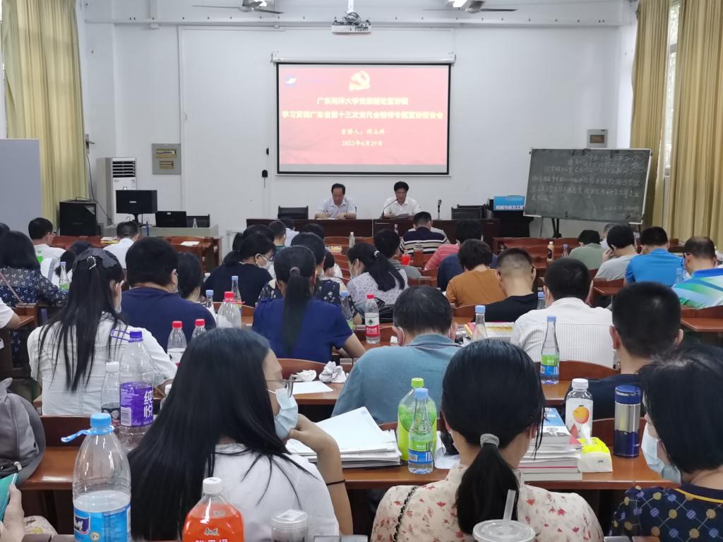 6月29日下午,公司在工程训练中心102室举办学习贯彻中国共产党广东省第十三次代表大会精神宣讲报告会。公司党委理论宣讲团成员、经济公司闫玉科教授应邀主讲,会议由公司党委书记李国芳主持,公司全体教职工120余人参加了宣讲会。