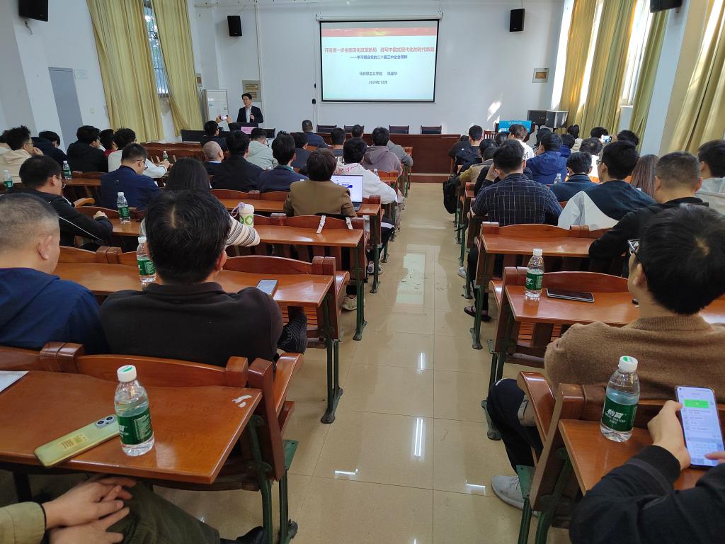 为进一步深入学习贯彻党的二十届三中全会精神,12月18日下午,BV伟德官方网站邀请公司党委理论宣讲团第四届成员,马克思主义公司巩建华教授在工程训练中心102举行学习贯彻党的二十届三中全会精神宣讲报告会。报告会由公司党委书记张懿主持,全院80余名教职工和员工党员参会。