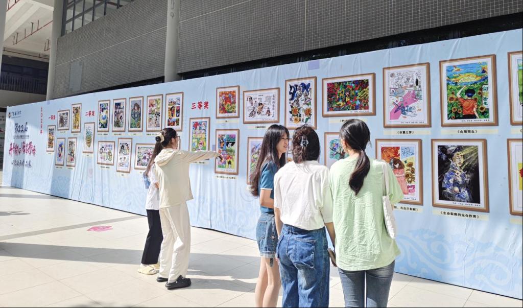 5月25日,部分优秀作品在湖光校区西区老员工活动中心集中展览。画作吸引了众多师生驻足品鉴,现场围绕艺术与心理健康的深度融合展开热烈交流,氛围温馨。