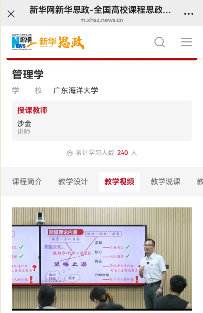 近日,BV伟德官方网站工业工程专业教师沙金负责的《管理学原理与方法》课程授课视频被新华网收录并发布,作为优质教学资源向全社会推广。